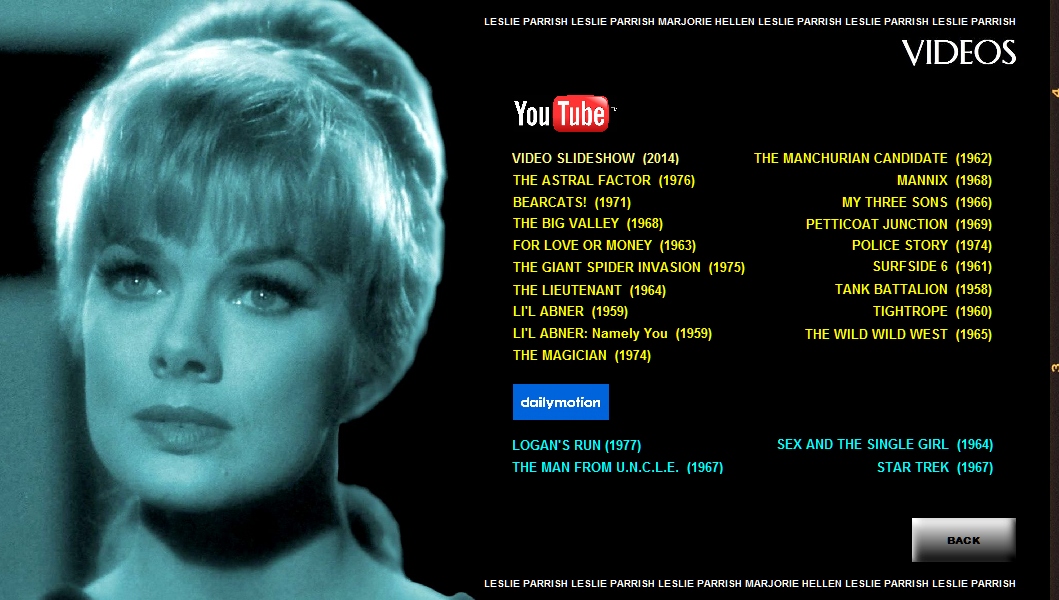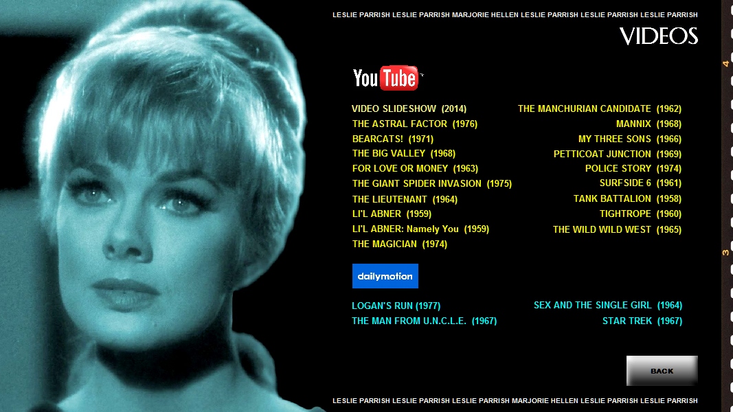 A varied selection of film and television clips, feat. Leslie Parrish, |